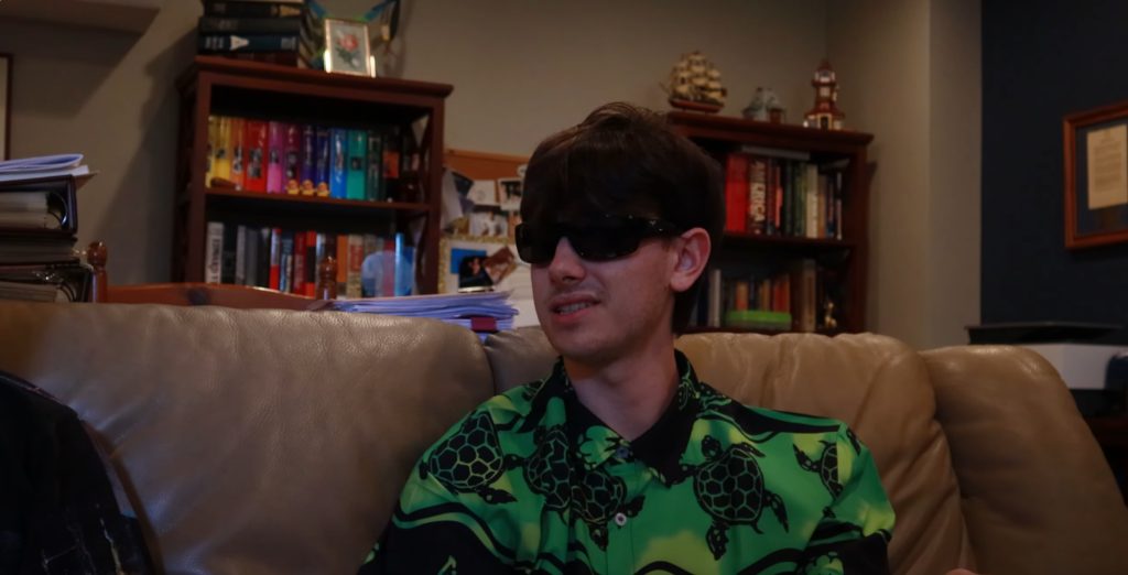 The courtroom sequence is a highlight, even if the setting is clearly an auditorium repurposed as a makeshift chamber of justice. Here, Timothy is told by the chancellor that he is not a “real person” but merely an idea, a ruling that condemns him to the incinerator. Just as all seems lost, The Void plunges the room into darkness, allowing the pair to make a daring escape. Their flight leads them to “The Human Making Machine,” a wonderfully lo-fi contraption that transforms Timothy into flesh and blood. The Pinocchio parallel is obvious, but it works – especially when Timothy, now human and sporting a turtle-print shirt, casually joins Stone on the sofa as though nothing strange had occurred.