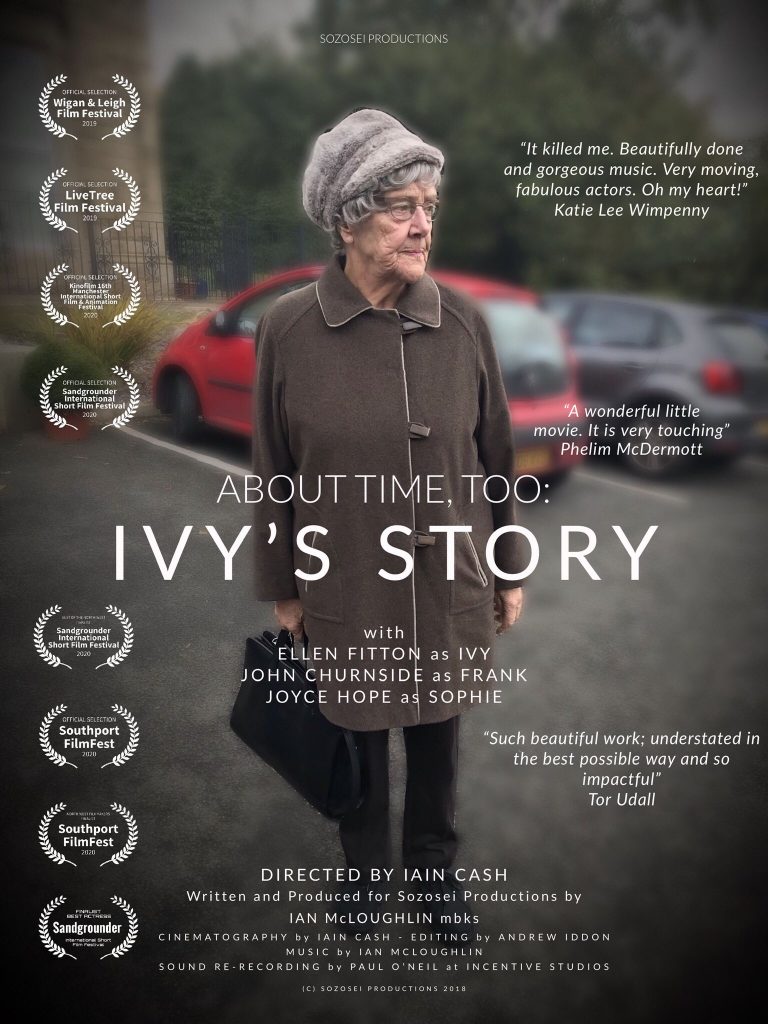 About Time Too: Ivy’s Story is a sweet, and moving thirteen-minute film that features two great and understated performances by Fitton and Churnside. The emotion seeps through the script, and one can’t help but feel sorry for both, especially Frank, who is witnessing Ivy’s mind deteriorating in front of him.