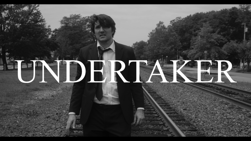 Photographed in stunning black and white, Undertaker begins with a man (Dustin Teuber) waking up in a suit, and beside some train tracks. Once he has managed to get to his feet, he approaches another man, credited as the Passenger (Justin Thibault) seemingly waiting for a train. The man, who claims to be the titular undertaker, starts a conversation with the passenger, who seemingly knows him.